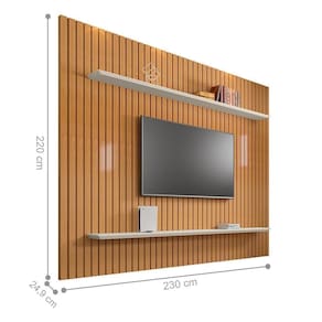 Feito em MDF, com detalhes ripados. Comporta TVs de até 60 Polegadas