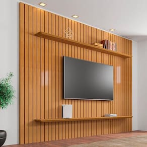 Feito em MDF, com detalhes ripados. Comporta TVs de até 60 Polegadas