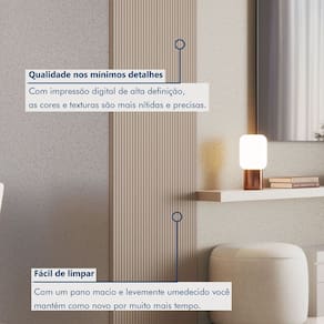 Os Painéis Ripados Decorativos Ecorevest são fabricados 100% em MDF, com revestimento externo em filme de polímero de fácil limpeza e impressão digital de alta definição, garantindo fidelidade e um acabamento impecável. Com design contemporâneo, eles agregam beleza e sofisticação a qualquer ambiente, seja sala, escritório ou área de lazer.