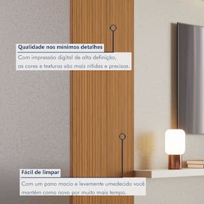 A instalação é simples e prática, sem necessidade de colas. Os painéis são fixados diretamente na parede através de réguas com parafusos e buchas, todos incluídos.