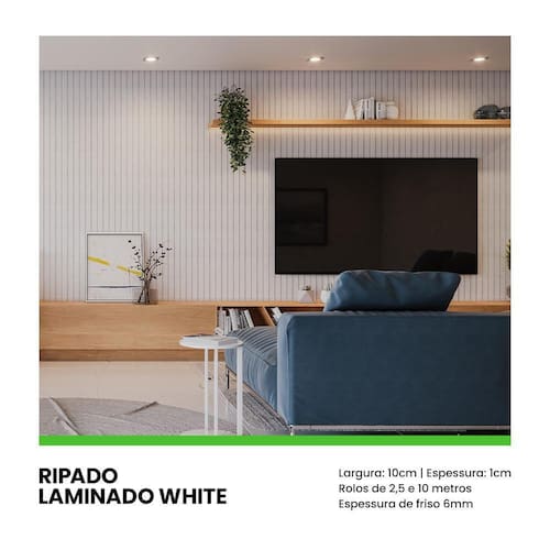 Este modelo pode ser instalado como Painel Ripado, Lambri que são as ripas com menor espaçamento e até Rodapé ou Roda teto, você que decide