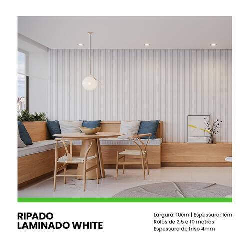 Painel Ripado Laminado de EVA 10cm de Largura Cor White Linha Urban