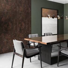 Características Adicionais do Produto: Ripado laminados Produto leve Infinitas possibilidades de paginações Possibilidade de fixar em superfícies curvas Pode ser aplicado no teto (sem precisar de uma estrutura específica) Os Ripados Laminados trazem a liberdade de uso do EVA com o acabamento fino da laminação São ideais para quartos, salas e ambientes corporativos que primam pela elegância e sofisticação