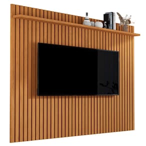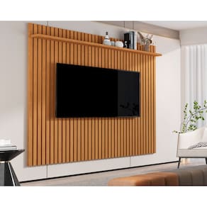 Painel Ripado Para Sala Grande com Prateleira 1.80m Venus Tv 70" - Marrom Escuro