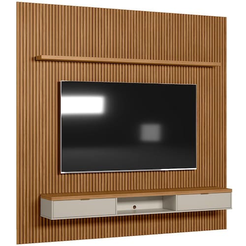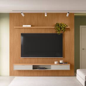 O painel ripado é uma tendência de decoração que pode transformar completamente qualquer ambiente. Melhor ainda quando combinado com uma bancada suspensa e prateleira para adicionar muito mais funcionalidade, assim como o Painel Ripado Para TV 75 Pol Slats e Bancada Lisa 258x250cm L05 Nature Off White, da Lyam Decor.