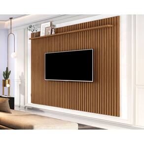 CARACTERÍSTICAS TÉCNICAS - Produzido em MDF - Pintura UV com acabamento fosco - Modelo Ripado (NÃO É ADESIVO) - Possui passa fios - Acompanha KIT de montagem e manual para auxílio - Prateleira superior - Ideal para TV até 75 polegadas