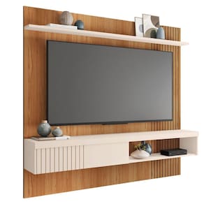 Painel Ripado Para Tv Até 65 Polegadas Com Prateleira E Nicho Manu Madeirado/off White Caemmun Freijó/off