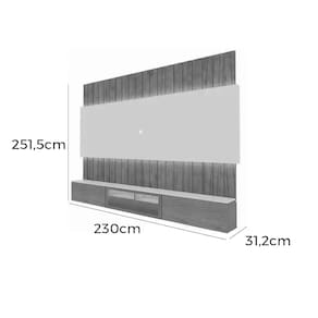Painel Soberano 230cm para TV até 85 Polegadas Ripado com LED e Vidro Reflecta Gelius O Painel Soberano 230cm para TV até 85 Polegadas Ripado com LED e Vidro Reflecta Gelius é um móvel 100% MDF, de ripas autênticas e uma bancada suspensa que traz um toque de leveza à peça. O modelo conta com três repartições espaçosas sendo a central em vidro Reflecta, deixando-a ainda mais moderna e elegante. A luz LED na cor branco frio proporciona maior clareza e amplitude ao ambiente, além de contar com o sistema de toque “Push to Open” e pistões a gás para uma abertura suave das três portas.\nMEDIDAS\nAltura 251,5cm\nLargura 230cm\nProfundidade 31,2cm\nCARACTERÍSTICAS\nFabricante Gelius\nModelo Painel Soberano 230cm\nGarantia 3 meses\nTipo de produto Painel para TV\nAmbiente Sala de Estar\nEstrutura MDF\nPossui Iluminação LED Sim\nQuantidade de Portas 03\nIdeal para TVs de até 85 Polegadas\nQuantidade de Prateleiras Não Possui\nTipo de Porta Basculante\nTipo de Dobradiça Metálica\nModelo Ripado Sim\nNecessita Montagem Sim\nAcompanha Manual de Instalação Sim\nINFORMAÇÕES IMPORTANTES\nObjetos decorativos que porventura apareçam na foto, não acompanham o produto. Não nos responsabilizamos pela montagem/instalação dos produtos.\nMontagens, desmontagens e instalações são responsabilidades do cliente. Indicamos que contrate uma empresa de montagem ou um montador de sua confiança.\nAlém disso, favor verificar se os pés e acessórios estão dentro do forro inferior do produto. Em suma, todas as informações divulgadas sobre o produto são de responsabilidade do Fabricante.\nAs cores do produto podem variar de acordo com o seu monitor, a iluminação do ambiente em que você está e até mesmo a sua percepção visual. Além da cor, pequenos detalhes e acabamentos podem não ficar evidentes na foto, por isso as imagens são meramente ilustrativas.
