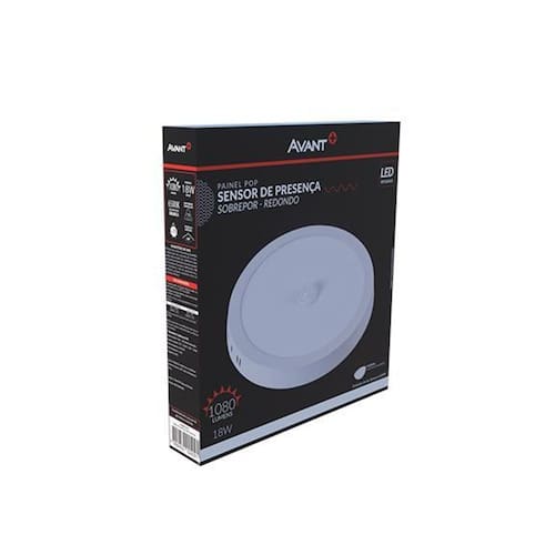 Painel sobrepor avant sensor de presença redondo pop 18w 6500k - luz branca - O painel com sensor de presença possibilita a otimização do consumo de energia, sendo direcionado aos ambientes que necessitem de iluminação somente quando há circulação de pessoas. Características gerais do produto: Marca: avant Emissão de luz: 6500k Voltagem: 127v a 220v Vida útil: 15000h Potência: 18w Fluxo luminoso: 1080lms Altura: 4,3 Largura: 21 : 12 meses fabricante Acompanha o produto: 1 painel avant : 12 meses fabricante Marca: Não Informado