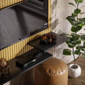 Painel Suporte Para Tv 32 Polegadas Ripado Smart Plus Madri COR: PRETO/RIPADO O Painel TV 32 com prateleiras de MDF/MDP é uma escolha inteligente e super em conta para deixar o seu ambiente bonito e organizado. Produzido em MDP com acabamento acetinado cerca de 20% de brilho , que garante maior durabilidade, resistência e facilidade na limpeza, possui painel para TV de até 32 suporta até 20 Kg com espaçamento para a passagem dos fios, o que deixa um visual clean e os cabos organizados. Possui 2 Nichos em Madeira, que deixam o móvel mais requintado, acomoda os equipamentos eletrônicos. Prático e moderno para deixar sua sala de estar ou quarto confortável para aproveitar o aconchego do seu lar.