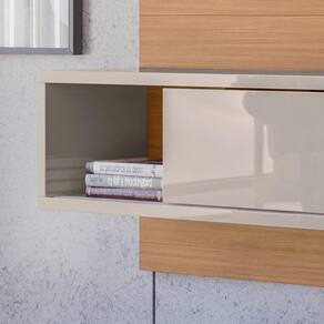 Ele dispõe de 1 prateleira superior, 2 prateleiras laterais de vidro, 2 nichos e 2 portas deslizante com ótimo espaçamento interno, atributos que auxiliam no momento de acomodar objetos decorativos e eletrônicos de forma organizada.