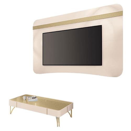 Painel Suspenso Armony Off White Champanhe com Mesa de Centro Cadenza Off White Champanhe - HB Móveis