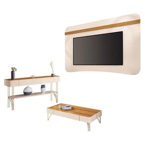 Painel Suspenso Armony Off White Cinamomo com Mesa de Centro Cadenza e Aparador Vivant Off White Cinamomo - HB Móveis