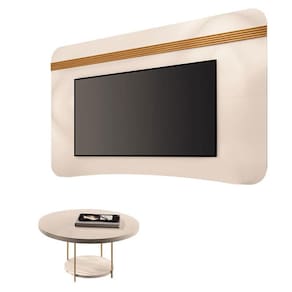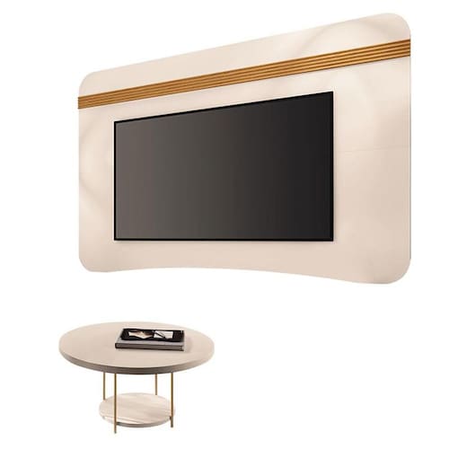 Painel Suspenso Armony Off White Cinamomo com Mesa de Centro Sky Off White - HB Móveis