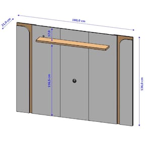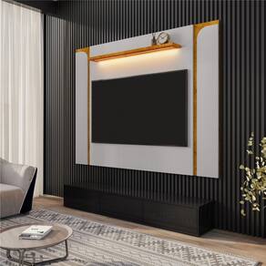 Estrutura: MDP, painel e travessas com espessura de 15 mm e prateleira com espessura de 25 mmAcabamento: Pintura U.V, Prateleira: Sim, com espessura 25 mm de espessura LED; Sim, Luz de LED na cor quente Suporta: TV Ideal para TV de até 75 polegadas com o peso de ate 35 kilos, com espaço para TV de 116,5 cm x 180 cmDimensões do produto montado