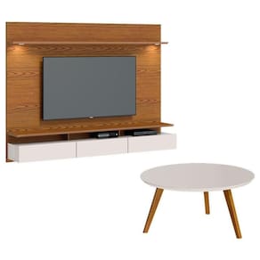 Painel Suspenso Decore 2.2 com mesa de centro Classic Redonda Freijó Off White - Imcal