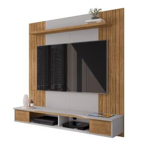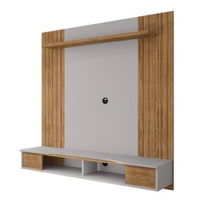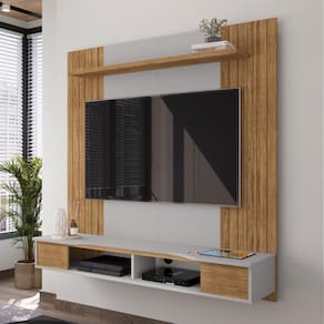 Com prateleira superior reforçada em MDP 25mm, ideal para objetos decorativos e eletrônicos, e 2 nichos externos, o painel garante espaço inteligente para acomodar aparelhos como consoles, decodificadores e itens de decoração. O detalhe do tampo curvo sobreposto recuado, somado aos acabamentos laterais fresados e aos painéis frisados em MDF, traz um toque sofisticado e moderno à peça.