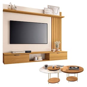 Painel Suspenso Lets Cinamomo Off White com Kit Mesa de Centro Sky Cinamomo - HB Móveis