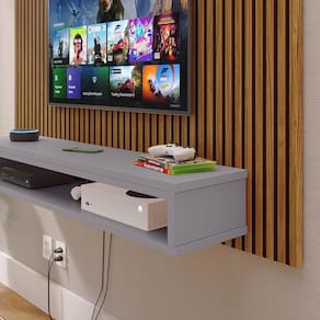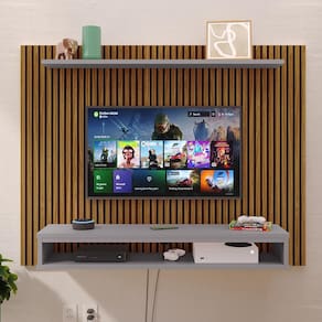Conta com uma prateleira superior ideal para armazenar itens decorativos e um amplo nicho inferior, podendo ser utilizado para armazenar itens eletrônicos, como: videogame, controles, entre outros.