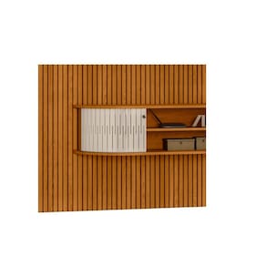 O Painel Piso-Teto New Monte Carlo traz sofisticação e modernidade para sua sala de estar. Com 1,54m de largura e 2,44m de altura, ele preenche sua parede do piso ao teto, suportando TVs de até 65 polegadas fixadas diretamente no painel frisado em MDF.