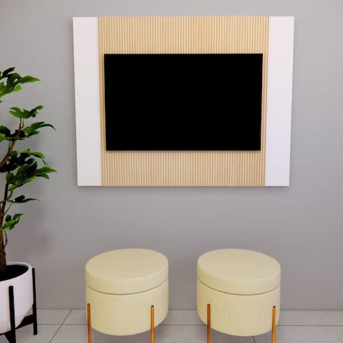 Os momentos de relaxamento em casa, seja assistindo à TV ou recebendo amigos, acontecem na sala. O Painel foi criado para combinar funcionalidade e estilo em um único móvel. Produzido em MDP de 1,5cm com revestimento em melamina de alta durabilidade. Produto Montado: Sim Acabamento: BP Ambiente Principal: Sala de Estar codigo_ean: 7900288101662 Complexidade da Montagem: Baixa: pode ser montado por uma pessoa sozinha Cor: Branco Cor do Produto: Branco Escala de Brilho: Brilhante Espessura do Painel: 15 cm Ideal para TVs até (Polegadas): 42 Itens Inclusos: 1 painel + 1 kit montagem + 1 kit ferragens Linha ou Coleção: Painel TV Egito Manual de Montagem e Instalação: https://product-hub-prd.madeiramadeira.com.br/981790/documents/d0e5a071-df55-4764-87ab-6cd3fdd61b332751187588117423236060865.pdf Marca: Brovalia Material Principal: MDP Necessita Montagem: Sim Origem do Produto: Nacional Peso: 6 kg Possui Espelho: Não Possui iluminação: Não Possui Passa Cabos: Sim Possui Portas: Não Possui Prateleiras: Não Possui Tomada: Não Possui Vidro: Não Recomendações de Uso, Manutenção e Limpeza: Limpeza Regular: Utilize um pano macio levemente umedecido com água e sabão neutro para limpar o gabinete. Evite Produtos Abrasivos: Não utilize produtos de limpeza abrasivos, solventes ou produtos químicos agressivos, pois podem danificar o acabamento do MDP. Secagem Adequada: Após a limpeza, seque imediatamente o gabinete com um pano seco para evitar que a umidade se acumule na superfície. Sistema de Montagem: Parafusos e Cavilha Suporte de TV Universal Incluso: Não Marca: Brovalia