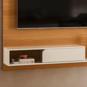 Indicado para TVs de ate 55 polegadas, o painel e perfeito para compor salas compactas ou medias, deixando o ambiente mais clean e funcional. Seu formato suspenso facilita a limpeza e contribui para um visual mais leve e atual.