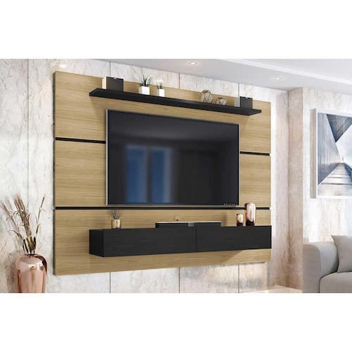 Decore sua sala com charme e elegância utilizando o Painel Suspenso Arezzo. Com espaço para TV de até 60 ele também conta com uma prateleira de 25mm para acomodar seus objetos de decoração, mais dois nichos fechados com portas basculantes, proporcionando ambiente ideal para curtir seus filmes e programas de TV