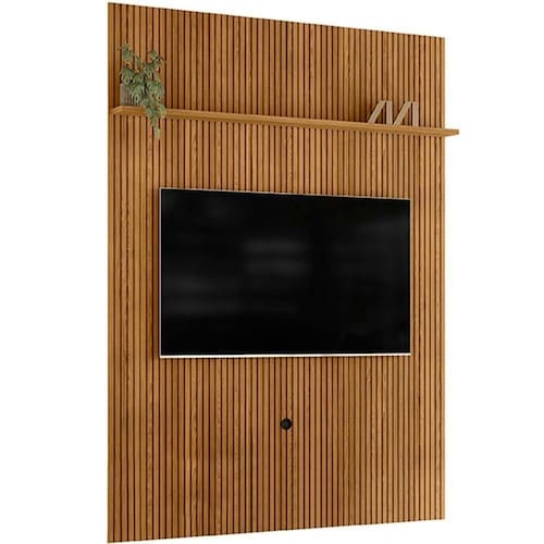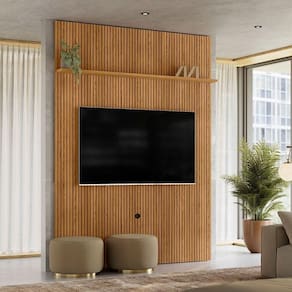 Painel Suspenso Piso-teto Para Tv 65 Polegadas Cassio Cumaru Dimensões do Painel Suspenso: - Altura: 244,5 cm - Largura: 179 cm - Profundidade: 18,5 cm Característica do Painel Piso-Teto para Sala TV até 65 polegadas: - Produzida em MDP e MDF de 12 e 25mm; - Pintura UV; - Painel em MDF frisado (baixo relevo); - 1 prateleira; - Espaço para TV: (L x A): 1,790 x 1,200 m; - Suporta TVs de até 65"; - O televisor deve ser fixado no painel; - Não acompanha objetos de decoração e aparelhos eletrônicos;