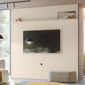Painel Suspenso Piso-teto Para Tv 75 Polegadas Ferrari Off White Dimensões do Painel Suspenso: - Altura: 244,5 cm - Largura: 238 cm - Profundidade: 18,5 cm Característica do Painel Piso-Teto para Sala TV até 75 polegadas: - Produzida em MDP e MDF de 12 e 25mm; - Pintura UV; - Painel em MDF frisado (baixo relevo); - 1 prateleira; - Espaço para TV: (L x A): 2,380 x 1,200 m; - Suporta TVs de até 75"; - O televisor deve ser fixado no painel; - Não acompanha objetos de decoração e aparelhos eletrônicos;