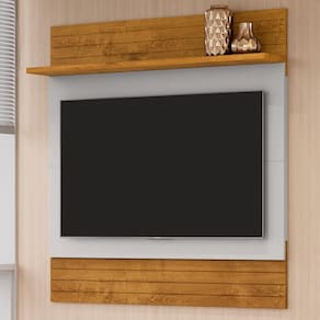 Painel Suspenso Angra, composição moderna com detalhes frisados que transformam sua sala. Estrutura em MDP/MDF (15/25mm) com acabamento em pintura UV texturizada. Possui frisos decorativos na parte superior e inferior, painéis sobrepostos (MDF 15mm), prateleira superior (MDP 25 mm) e passa fios. Suporta Tvs de até 50 polegadas com segurança. Fixação por meio de parafusos. Este produto será entregue em 1 volume.