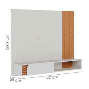 Painel Suspenso Jurerê 1.6, para quem busca estilo e praticidade em ambientes compactos. Estrutura em MDP/MDF (12 e 15 mm) com acabamento em pintura UV texturizada. Conta com frisos laterais decorativos, porta basculante com dobradiças metálicas e detalhe curvo junto ao ripado e 1 nicho aberto com passa fios embutido, garantindo organização e funcionalidade. Suporta TVs de até 60 polegadas com segurança. Este produto chegará em sua casa separado em 1 volume.