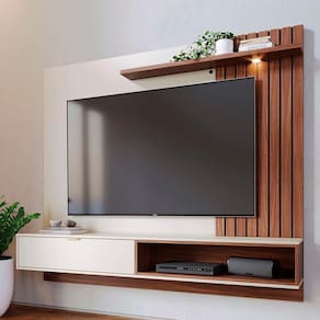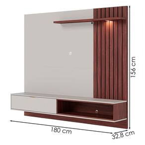 Painel Suspenso Tocantins 1.8, combina design sofisticado e funcionalidade para transformar sua sala. Estrutura em MDP (25 e 15 mm) com acabamento em pintura UV texturizada. Composto por porta basculante, puxador metálico (fosco), prateleira com luminária LED, detalhe lateral frisado (baixo relevo) e passa fios. Suporta TVs de até 65 polegadas com segurança. Este produto será entregue em 2 volumes.