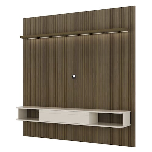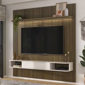 Painel suspenso moderno e funcional, ideal para valorizar a sua sala. Com estrutura que suporta com segurança TVs de até 75", o qual já acompanha suporte e oferece passa fios para manter os cabos sempre organizados. A prateleira superior em MDF com 25 mm conta com LED embutido, realçando a decoração com iluminação suave. O nicho central possui porta basculante com amortecedor, bordas curvas e detalhe usinado em baixo relevo, combinando sofisticação e praticidade no dia a dia. O acabamento ripado em impressão 3D proporciona um visual perfeito para ambientes que buscam estilo e funcionalidade. Toda sua estrutura é feia em MDF/MDP de 15mm, com acabamento em pintura UV. Este móvel chegará em sua casa separado em 02 volumes.