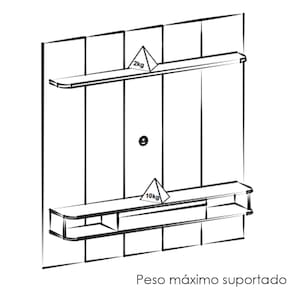Peso máximo suportado: 12kg (02kg prateleira/ nicho central 10kg).