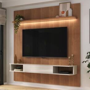 Painel suspenso moderno e funcional, ideal para valorizar a sua sala. Com estrutura que suporta com segurança TVs de até 75, o qual já acompanha suporte e oferece passa fios para manter os cabos sempre organizados. A prateleira superior em MDF com 25 mm conta com LED embutido, realçando a decoração com iluminação suave. O nicho central possui porta basculante com amortecedor, bordas curvas e detalhe usinado em baixo relevo, combinando sofisticação e praticidade no dia a dia. O acabamento ripado em impressão 3D proporciona um visual perfeito para ambientes que buscam estilo e funcionalidade. Toda sua estrutura é feia em MDF/MDP de 15mm, com acabamento em pintura UV. Este móvel chegará em sua casa separado em 02 volumes.