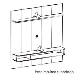 Peso máximo suportado: 12kg (02kg prateleira/ nicho central 10kg).