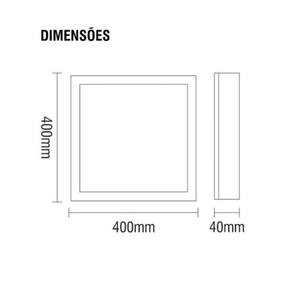 Acompanha Placa de LED: 01 Formato: quadrado Dimerizável: não Potência: 32 W Vida Útil: 30.000 horas Lúmens: 3200 Número de Lâmpadas: Placa de LED Material Principal: Alumínio Comprimento: 40 cm Indicado para Forro Modular: Sim Medidas do Nicho A x L x P : 38,5 x 38,5 Voltagem: bivolt Cor Predominante: Branco Cor da Luz: 4000K Luz Branco Natural Largura: 40 cm Possui Reator: Não Possui Difusor: Sim Possui Aletas: Não Tipo de Luminária: Com placa de LED Marca: Não Informado