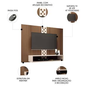 Simples e funcional, o Painel TV 47 Pol 120cm Suspenso Com Nicho Form Off/Castanho, da HB Móveis, é o item perfeito para você que busca praticidade aliada ao bom gosto.