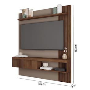 Painel Tv 55 Pol 150cm Bancada Suspensa Ripado Luana C01 - D'rossi Cor Fendi/havana Transforme sua sala com o Painel TV 55 Pol 150cm Bancada Suspensa Ripado Luana! Fabricado em MDP e MDF com acabamento em pintura UV fosca, oferece durabilidade e toque contemporâneo. Seu design moderno se destaca pelo detalhe ripado em baixo relevo na porta deslizante e nas laterais, agregando charme e sofisticação ao ambiente. Ideal para TVs de até 55 polegadas, suporta até 33kg distribuídos. Conta com prateleira e nicho para organizar eletrônicos, decoração ou objetos do dia a dia. A porta deslizante com puxador embutido facilita o acesso, mantendo o visual limpo e elegante. Prático, possui passa fio para maior organização dos cabos. Suspenso e sem pés, valoriza ambientes compactos e facilita a limpeza. Uma escolha perfeita para quem busca funcionalidade, modernidade e estilo na decoração! Dimensões do Produto: Altura: 183 cm Largura: 150 cm Profundidade: 34 cm Peso: 44 kg Especificações do Produto: Material da Estrutura: MDP 12mm, MDF 12mm e MDP 15mm Acabamento: Pintura UV Escala de Brilho: Fosco Ideal para TVs de até: 55 Polegadas Peso Suportado: 33 kg distribuídos Possui Prateleiras: Sim Quantidade de Prateleiras: 1 Prateleira Possui Nichos: Sim Quantidade de Nichos: 1 Nicho Possui Portas: Sim Quantidade de Portas: 1 Porta Tipo de Portas: Deslizante Possui Passa Fio: Sim Possui Gavetas: Não Possui Puxador: Sim,Embutido Possui LED: Não Possui Espelho: Não Possui Pés: Não Diferenciais: Design moderno; Painel suspenso, Porta e lateral com detalhe ripado em baixo relevo. Sistema de Montagem: Parafusos/Cavilhas/Minifix Manual de Montagem: Sim Complexidade da Montagem: Média Montagem: Recomendamos que seja feita por um profissional Garantia: 90 dias contra defeito de fabricação Instruções de Limpeza: Utilizar um pano limpo e levemente úmido Quantidade de Volumes: 1 Caixa Medida das Embalagens: Caixa 1: 190x61,5x7,6cm Entrega: É feita somente até o térreo ou portaria. Confira sempre as medidas das embalagens para assegurar que o produto passe por portas e escadas do local.
