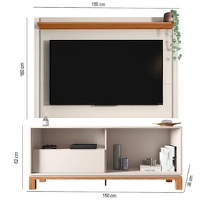 Painel Tv 55 Pol 150cm Com Rack Bancada Para Sala Visari Off White/freijó C01 - D'rossi Se você busca um ambiente moderno, elegante e funcional, o Painel TV 55 Pol 150cm com Rack Bancada Visari na cor Off White/Freijó é a escolha ideal para transformar sua sala de estar. Com design contemporâneo, acabamento de alta qualidade e soluções práticas, ele eleva o padrão da decoração com estilo e eficiência. O painel extensível possui largura ajustável de 136 a 180 cm, adaptando-se perfeitamente a TVs de até 55 polegadas. Seu acabamento microripado confere sofisticação ao ambiente, enquanto a prateleira de 25 mm oferece espaço funcional para itens decorativos. Já o rack bancada conta com porta deslizante microripada, gaveta com corrediças telescópicas e prateleiras internas. O espaço vazado entre a gaveta e o nicho garante ventilação eficiente para eletrônicos. O pés em madeira no estilo cavalete com base elevada proporcionam charme e estabilidade. O conjunto Visari é ideal para quem deseja uma sala de estar cheia de personalidade. Dimensões do Produto: Altura do Painel: 180 cm Largurada do Painel: 150 cm Altura: 62 cm Largura: 150 cm Profundidade: 36 cm Peso: 74 kg Painel Extensível: 136cm/150cm e 180cm Especificações do Produto: Material da Estrutura: MDP 15mm Acabamento: Pintura UV Escala de Brilho: Brilho/Fosco Peso Suportado: 50 kg distribuídos Suporta TV de até: 55 Polegadas Possui Prateleiras: Sim Quantidades de Prateleiras: 2 Prateleiras Possui Portas: Sim Quantidade de Portas: 1 Porta Tipo de Portas: Deslizante Possui Gavetas: Sim Quantidade de Gavetas: 1 Gaveta Tipo de Corrediças: Telescópicas Possui Puxador: Sim Material do Puxador: ABS Possui Nichos: Não Possui Pés: Sim Tipo de Pés: Pés cavalete com base elevada Material dos Pés: Madeira Possui LED: Não Possui Vidro: Não Sapatas Niveladoras: Não Possui Passa-fios: Sim Diferenciais: Design moderno; Painel Extensível, até 3 medidas; Porta com detalhe microripado. Sistema de Montagem: Cavilhas/Parafusos/Minifix Manual de Montagem: Sim Complexidade da Montagem: Média Montagem: Recomendamos que seja feita por um Garantia: 90 dias contra de fabricação Instruções de Limpeza: Utilizar um pano limpo e levemente úmido Quantidade de Volumes: 2 Caixas Medida das Embalagens: Caixa 1: 156,7x44,7x9cm; Caixa 2: 141,7x39,7x7cm : É feita somente até o térreo ou portaria. Confira sempre as medidas das embalagens para assegurar que o produto passe por portas e escadas do .