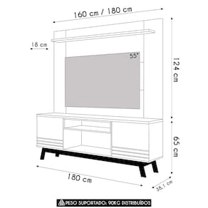 O Painel Suspenso é projetado para TVs de até 55 polegadas, proporcionando um visual mais clean e moderno. A prateleira superior oferece um ótimo espaço para objetos decorativos, tornando o ambiente mais aconchegante e personalizado. Juntos, o Rack e o Painel formam a combinação perfeita de elegância, funcionalidade e praticidade, criando um espaço de estar moderno e confortável, ideal para quem deseja sofisticação em cada detalhe.