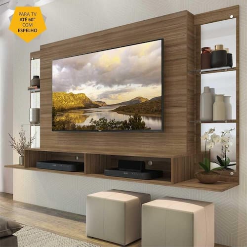 Prático e moderno para deixar sua sala de estar confortável para aproveitar o aconchego do seu lar. O Painel TV até 60 polegadas com espelho e prateleiras de vidro Nairóbi Multimóveis é uma escolha inteligente e super em conta para deixar o seu ambiente bonito e organizado. Produzido em MDP com acabamento acetinado, que garante maior durabilidade, resistência e facilidade na limpeza, possui painel para TV de até 60 com espaçamento para a passagem dos fios, o que deixa um visual clean e os cabos organizados. Possui 4 prateleiras em vidro, com detalhes em espelho, que deixam o móvel mais requintado e 2 nichos para acomodar os equipamentos eletrônicos. Os espelhos são de vidro (o que evita que a imagem fique distorcida) e lapidados, ou seja, passam por um processo para que as bordas não fiquem cortantes, o que garante maior segurança.