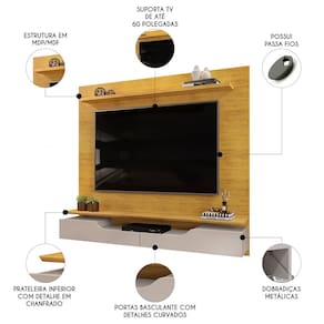 Com um design elegante, ele é perfeito para espaços compactos, adaptando-se à Sala de Estar, dormitórios ou áreas de lazer com versatilidade. Projetado para suportar TVs de até 60 polegadas. O Painel de TV se destaca pela ampla prateleira superior, ideal para exibir objetos decorativos com elegância. Suas duas portas basculantes com usinagens curvas oferecem um espaço discreto para armazenar itens, enquanto o nicho central acomoda seus eletrônicos de maneira prática e acessível. O tampo chanfrado, com um acabamento delicado, adiciona sofisticação ao conjunto, elevando o visual do ambiente. Para maior organização, o Painel Para TV conta com um sistema de passa-fios integrado, mantendo os cabos organizados e fora de vista. Produzido em MDF e MDP provenientes de reflorestamento e acabamento em pintura UV, o Painel Para Sala alia durabilidade, resistência e respeito ao meio ambiente.