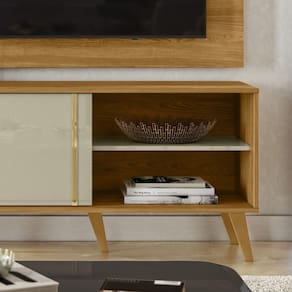 Painel Tv 60 Pol 160cm Com Rack Bancada Para Sala Hylon Cumaru/opala M20 - D'rossi Transforme sua sala com o Painel com Rack Bancada Hylon na Calacata e Off White ideal para TVs de até 60 polegadas. Com 160 cm de largura, seu design moderno combina pintura que imita pedra ou madeira e pés de poliestireno, unindo elegância e funcionalidade. Produzido em MDP de 15mm com fibras de madeira reflorestada, oferece alta resistência ao empenamento. O painel possui duas fitas com acabamento em Hot Stamping, uma técnica que utiliza calor para aplicar detalhes metálicos. Isso deixa o visual mais moderno, brilhante e elegante, dando um toque de sofisticação ao ambiente. O móvel conta com 2 portas deslizantes, ideais para organização de eletrônicos e objetos decorativos, além de uma bancada espaçosa. A combinação do painel com a bancada cria um ambiente harmônico, prático e moderno, perfeito para quem busca beleza e funcionalidade em um só produto. Ideal para transformar sua sala em um verdadeiro espaço de cinema. Dimensões do Rack Bancada: Altura: 58 cm Largura: 160 cm Profundidade: 37 cm Dimensões do Painel: Altura: 90 cm Largura: 160 cm Profundidade: 3 cm Peso: 37 kg Especificações do Produto: Material da Estrutura: MDP 15mm Acabamento: Pintura UV Escala de Brilho: Brilho/Fosco Peso Suportado: 53 kg distribuídos Suporta TV de até: 60 Polegadas Possui Portas: Sim Quantidade de Portas: 2 Portas Tipo de Porta: Deslizante Tipo de Dobradiças: Metálicas Possui Gavetas: Não Possui Prateleiras: Sim Quantidade de Prateleiras: 1 Prateleira Possui Passa-Fios: Sim Possui Pés: Sim Material dos Pés: Poliestireno Material dos Puxadores: Não Possui Nichos: Não Possui LED: Não Possui Espelhos: Não Diferenciais: Perfis com Acabamento em Hot Stamping; Painéis em MDP 15mm, Pés em Poliestireno; 2 Portas de correr. Sistema de Montagem: Parafusos/Cavilhas Manual de Montagem: Sim Complexidade da Montagem: Média Montagem: Recomendamos que seja feita por um profissional Garantia: 90 dias contra defeito de fabricação Instruções de Limpeza: Utilizar um pano limpo e levemente úmido Quantidade de Volumes 2 Caixas Medida das Embalagens Caixa 1: 30,5x17,5x6,5cm; Caixa 2: 174,5x47,7x10cm; Entrega: É feita somente até o térreo ou portaria. Confira sempre as medidas das embalagens para assegurar que o produto passe por portas e escadas do local.