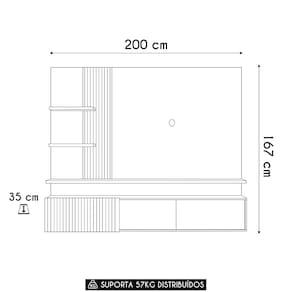 Com um design que une funcionalidade e sofisticação, O Painel de TV e a Bancada Para Sala são fabricados com chapas de 15 e 25mm, garantindo resistência e durabilidade. O acabamento combinado aos detalhes ripados, cria um visual elegante. Para complementar, as fitas de LED integradas adicionam um toque de modernidade, proporcionando uma iluminação charmosa e acolhedora ao ambiente. Com capacidade para TVs de até 65 polegadas, a Bancada de TV oferece ampla funcionalidade. Suas três portas de correr deslizantes garantem praticidade no acesso aos compartimentos internos, além de facilitar a limpeza. As duas prateleiras são ideais para organizar aparelhos eletrônicos, decorações e outros itens, promovendo um espaço harmonioso e organizado. A Bancada Suspensa combina design, praticidade e inovação para elevar o padrão da sua Sala de Estar.