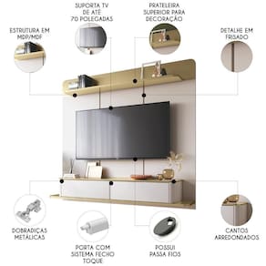 Painel TV 70 Pol 180cm Bancada Suspensa Gava Off/Champanhe H01 - Mpozenato