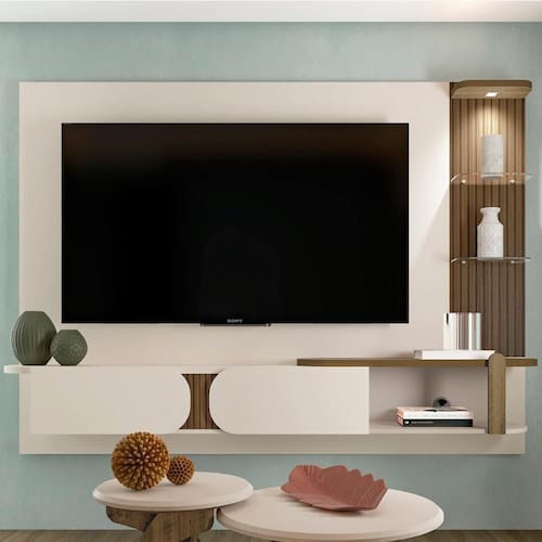 O design deste Painel Para Tv se destaca pelas formas curvas, criando um visual orgânico e harmonioso. Essa estética suave combina perfeitamente com ambientes modernos.