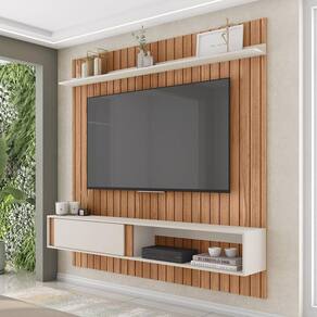 Painel Tv 75 Pol 180cm Bancada Suspensa Ripado Eluni C01 - D'rossi Freijó/off White Leve sofisticação e funcionalidade para sua sala com o Painel TV 75 Pol 180cm Bancada Suspensa Eluni. Com design contemporâneo e acabamento refinado, ele é a escolha ideal para quem busca organização, estilo e praticidade no ambiente. Com 180cm de largura, este painel é perfeito para aCômodar TVs de até 75 polegadas com segurança e elegância. Sua estrutura é composta 100% em MDP e MDF de alta qualidade, com pintura UV em acabamento, que destaca a combinação moderna das cores. O destaque fica por conta do painel ripado em baixo relevo, que imprime um visual sofisticado à peça. A bancada suspensa conta com porta deslizante, 2 nichos funcionais e uma prateleira superior, ideais para organizar eletrônicos, objetos decorativos e muito mais. Além disso, o passa-fio integrado facilita a instalação dos cabos, mantendo o ambiente sempre limpo e bem organizado. Dimensões do Produto: Altura: 183 cm Largura: 180 cm Profundidade: 30 cm Peso: 61 kg Especificações do Produto: Material da Estrutura: MDP e MDF Acabamento: Pintura UV Escala de Brilho: Fosco/Brilho Ideal para TVs de até: 65 Polegadas Possui Prateleiras: Sim Quantidade de Prateleiras: 1 Prateleira Possui Nichos: Sim Quantidade de Nichos: 2 Nichos Possui Portas: Sim Quantidade de Portas: 1 Porta Tipo de Portas: Deslizante Possui Passa Fio: Sim Possui Gavetas: Não Possui Puxador: Não Possui LED: Não Possui Espelho: Não Possui Pés: Não Diferenciais: Design moderno; Painel suspenso, Detalhe ripado em baixo relevo; Prateleira superior. Sistema de Montagem: Parafusos Manual de Montagem: Sim Complexidade da Montagem: Média Montagem: Recomendamos que seja feita por um profissional Garantia: 90 dias contra defeito de fabricação Instruções de Limpeza: Utilizar um pano limpo e levemente úmido Quantidade de Volumes: 2 Caixas Medida das Embalagens: Caixa 1: 189,2x91,5x14,7cm; Caixa 2: 186,1x 31,9x8,7cm Entrega: É feita somente até o térreo ou portaria. Confira sempre as medidas das embalagens para assegurar que o produto passe por portas e escadas do local.
