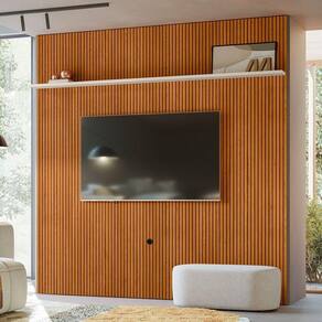 Painel Tv 75 Pol 238cm Ripado Para Sala Kalven M20 - D'rossi Cor Cinamomo E Off White O Painel Ripado Kalven, é a escolha ideal para quem busca um móvel imponente, moderno e durável. Com 238 cm de largura, é perfeito para ambientes amplos e acomoda TVs de até 75 polegadas com segurança e elegância. Com design do piso-teto, ele preenche ambientes amplos com elegância e modernidade. Seu destaque fica por conta do painel em MDF frisado em baixo relevo, que adiciona textura, profundidade e sofisticação à decoração. A estrutura é composta por chapas de MDP e MDF de 12mm e 25mm, materiais derivados de madeira reflorestada, que garantem resistência ao empenamento, acabamento uniforme e longa durabilidade. O móvel ainda conta com uma prateleira prática e funcional, perfeita para acomodar aparelhos eletrônicos, decorações ou objetos do dia a dia. Ideal para quem deseja transformar o ambiente com beleza, funcionalidade e acabamento de alto padrão. Dimensões do Produto: Altura: 245 cm Largura: 238 cm Profundidade: 19 cm Peso: 73 kg Especificações do Produto: Material da Estrutura: MDP/MDF Espessuras das Chapas: 15mm/25mm Acabamento: Pintura UV Escala de Brilho: Brilho/Fosco Peso Suportado: 38 kg distribuídos Suporta TV de até: 75 Polegadas Possui Prateleiras: Sim Quantidade de Prateleiras: 1 Prateleira Possui Gavetas: Não Possui Portas: Não Possui Puxadores: Não Possui Nichos: Não Possui LED: Não Possui Passa-Fios: Sim Possui Pés: Não Diferenciais: Painel frisado em MDF; Estrutura resistente em MDP/MDF; Prateleira integrada; Passa-fios. Sistema de Montagem: Parafusos/Cavilhas Manual de Montagem: Sim Complexidade da Montagem: Média Montagem: Recomendamos que seja feita por um profissional Garantia: 90 dias contra defeito de fabricação Instruções de Limpeza: Utilizar um pano limpo e levemente úmido Quantidade de Volumes 3 Caixas Medida das Embalagens Caixa 1: 238x18x15,2cm; Caixa 2: 246,5x61,1x3,2cm; Caixa 3: 246,5x62,3x3,2cm Entrega: É feita somente até o térreo ou portaria. Confira sempre as medidas das embalagens para assegurar que o produto passe por portas e escadas do local.