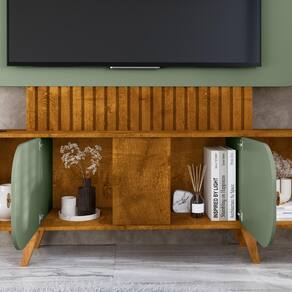Além dos dois nichos laterais para acomodação de aparelhos e das portas, o painel é ideal para TV de até 75 Polegadas, o suporte para TV acompanha o painel, tornando completo.